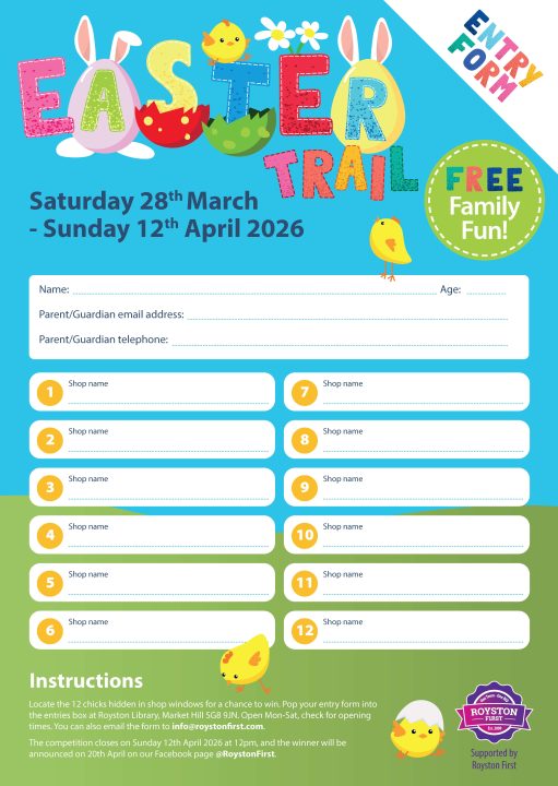 - To enter the competition, participants must complete the A4 competition entry form – available to download from the Royston First website, or collect in-person from one of the collection points, such as Glazed Creations, Ladds, Royston Town Council, Royston Library, Bow Books or Kooky Nohmad.